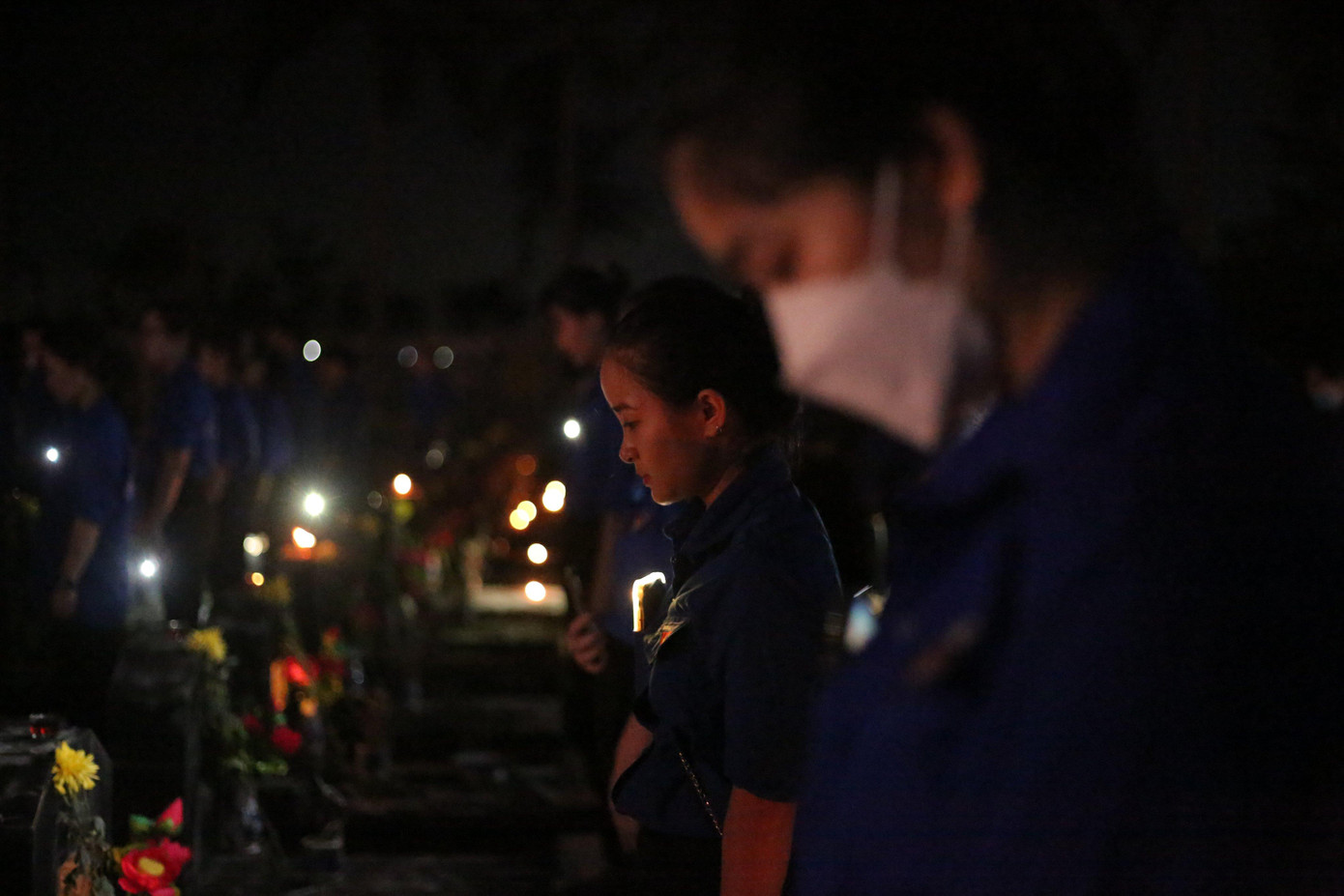 Những ngọn nến sáng rực trong đêm, những nén hương thơm thể hiện đạo lí "Uống nước nhớ nguồn", biết ơn bao thế hệ cha ông đã mãi nằm lại nơi chiến trường, hi sinh xương máu vì Tổ quốc.