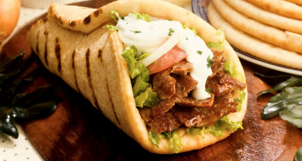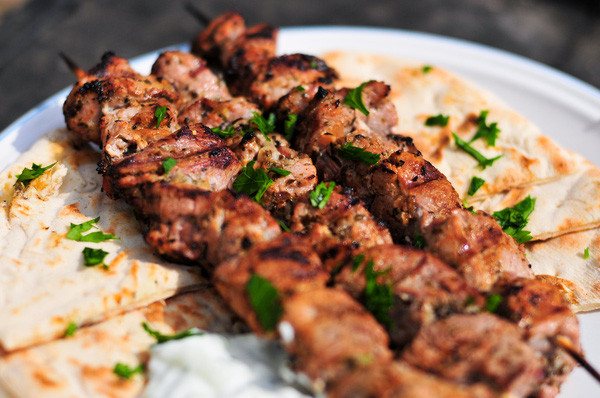 Khá phổ biến trên toàn thế giới, Souvlaki là món thịt nướng và sốt tzatziki – được làm từ sữa chua, dưa chuột và lá bạc hà. Loại thịt thường được sử dụng là thịt lợn, sau đó xiên vào que để nướng cháy cạnh. Bánh pita, salat hay cơm thường được ăn cùng với Souvlaki.