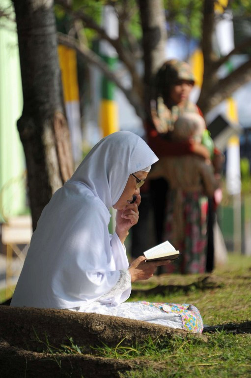Một phụ nữ Indonesia cầu nguyện khi tới thăm nghĩa trang Ulhee Lheue ở Banda Aceh, Indonesia, nơi yên nghỉ của hàng nghìn nạn nhân vụ thảm họa.