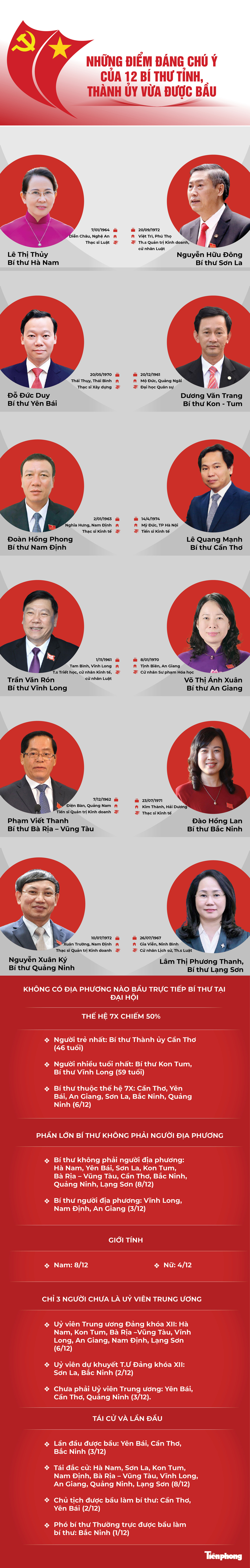 TPO - Trong tuần qua (từ 21-27) đã diễn ra Đại hội Đảng bộ nhiệm kỳ 2020-2025 của 12 tỉnh, thành ủy. Tại đại hội, Ban Chấp hành khóa mới đã bầu ra những người có uy tín, năng lực và phẩm chất để giữ chức danh bí thư các tỉnh, thành ủy với nhiều điểm đáng chú ý.