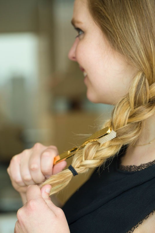 10. Đánh phồng bím tóc: Nếu bạn đang muốn sở hữu những bím tóc phồng dày, sau khi thắt bím, bạn có thể dùng một chiếc bàn chải đánh răng cũ rồi nhẹ nhàng chải ngược các bím tóc để đánh rối và tạo độ phồng cho bím tóc.