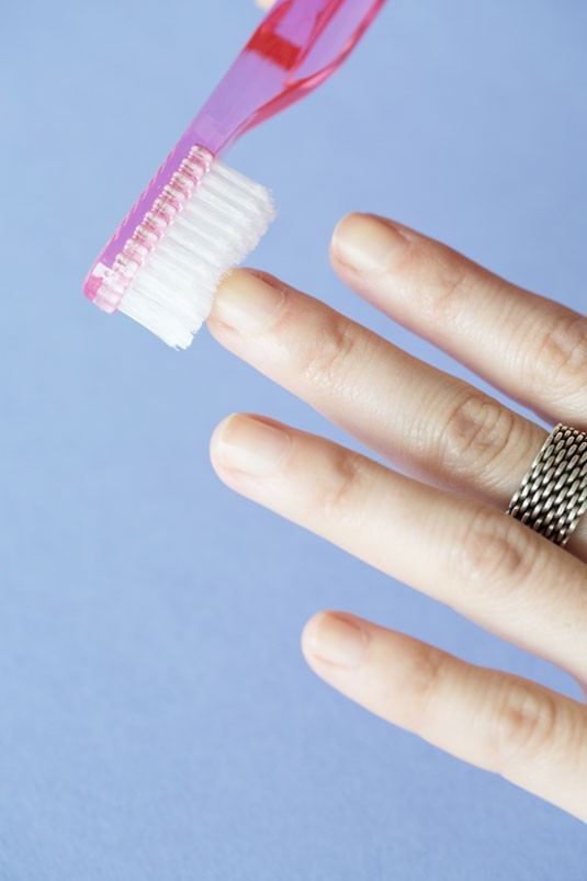 7. Vệ sinh móng tay: Có thể bạn không có sẵn đồ chải móng nhưng lại có chiếc bàn chải đánh răng cũ. Hãy dùng bàn chải để lấy sạch vết cáu bẩn bám dưới móng tay.