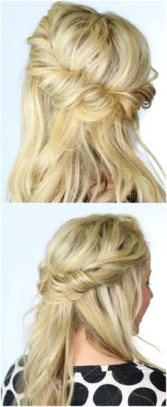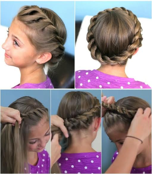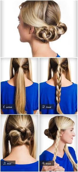 Kiểu tóc này rất đơn giản. Bạn chỉ cần chia tóc làm 3 phần bằng nhau, lần lượt tết từng phần và cuộn chúng lại với nhau.