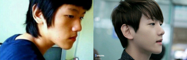 Khuôn mặt của Baek Hyn trở nên sắc nét, bảnh bao như hiện giờ cũng nhờ sự can thiệp của dao kéo. Anh chàng bị nghi chỉnh cằm và mũi.