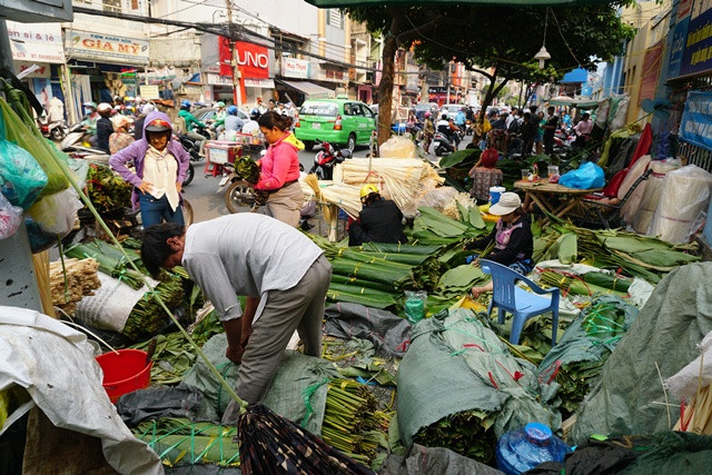 Cầm bó lá trên tay, bà Nguyễn Thị Toản (ngụ Q.Phú Nhuận) bộc bạch: “Năm nào cũng vậy, cứ đến trưa ngày 23 là tôi lại ra đây mua lá về gói bánh chưng, bánh tét. Nhờ có những gánh hàng lá này mà tôi cũng như những gia đình khác ở Sài Gòn có thể tìm lại và giữ gìn dư vị ngày Tết cổ truyền”.