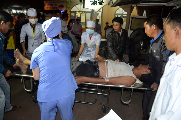 Trong đó, 5 trường hợp bị thương nặng phải chuyển lên Bệnh viện Đa khoa tỉnh Đắk Lắk gồm: Hoàng Văn Cường, (sinh năm 1977, trú tại thôn 9A, xã Cư Pao, thị xã Buôn Hồ); Hồ Đức Bé, (sinh năm 1958, trú tại xã Cư Bao); Võ Hoàng Vũ (sinh năm 1991, tỉnh Đồng Tháp); Hồ Đức Thập (sinh năm 1956, trú tại xã Cư Bao); Và tài xế lái xe tên Nam.