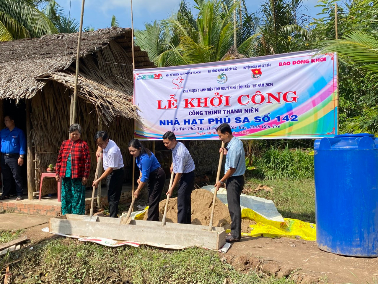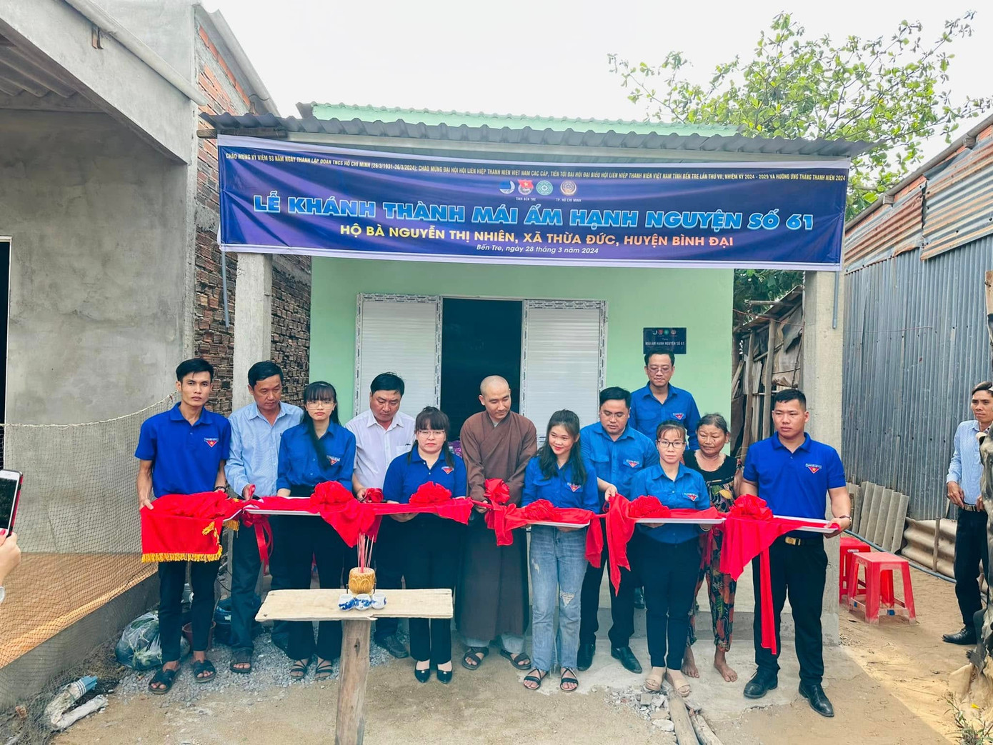 Phát huy vai trò của Đoàn, Hội trong công tác an sinh xã hội, đặc biệt là tri ân người có công và gia đình chính sách, trong năm 2024, Ban Thường vụ Tỉnh đoàn, Hội LHTN Việt Nam tỉnh Bến Tre đã vận động các đơn vị tài trợ, đồng hành hỗ trợ các địa phương xây dựng 89 căn "Mái ấm Thanh niên".