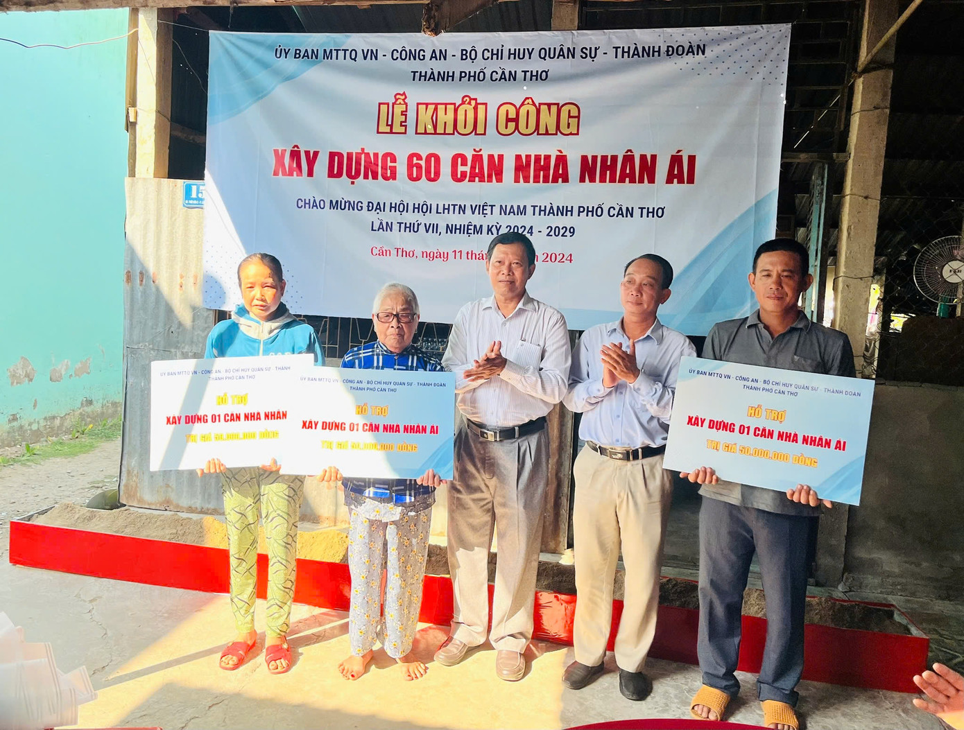 Hướng tới chào mừng Đại hội Hội LHTN Việt Nam các cấp nhiệm kỳ 2024 – 2029, Thành Đoàn Cần Thơ đã triển khai công trình xây dựng 60 căn nhà nhân ái chăm lo cho đồng bào tôn giáo.