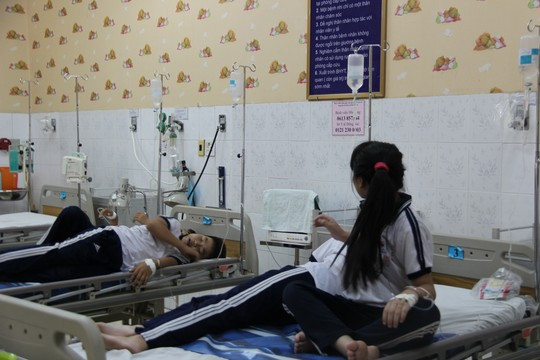 Các em học sinh đang được điều trị tại bệnh viện do bị ngộ độc