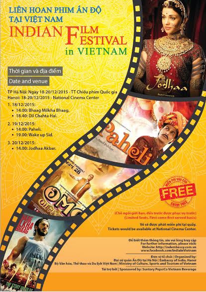 Liên hoan phim Ấn Độ được mở màn tại Rạp Lê Độ, Đà Nẵng từ 12/12 đến 13/12 với 4 bộ phim Ba chàng ngốc, Lạy Chúa tôi, Cậu bé đặc biệt, Paheli và được tiếp nối ở Trung tâm chiếu phim quốc gia, Hà Nội từ ngày 18/12- 20/12 với phim Nghị lực, Những trái tim khát vọng, Paheli và Tỉnh dậy nào Sid. LHP sẽ kết thúc tại Rạp BHD Star Cineplex, TP.HCM từ ngày 22/12 đến 23/12 với phim Cậu bé đặc biệt, Những trái tim khát vọng, Nghị lực, Lạy Chúa tôi, Ba chàng ngốc, Jodhaa Akbar. Các buổi chiếu mở cửa tự do cho công chúng. Vé sẽ được phát tại các rạp chiêu phim.