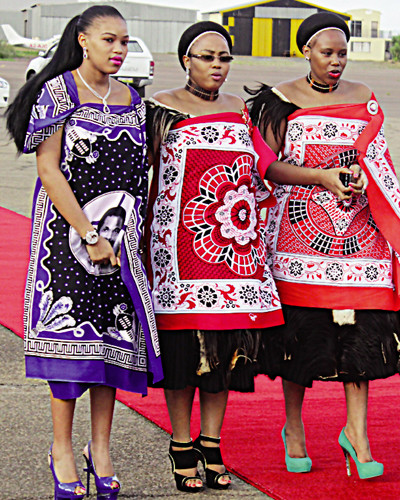 Nhà vua có 13 cung điện, vô số triều thần và một hậu cung phục vụ cho 14 vợ cùng 25 người con. Mỗi năm, ông lại tuyển thêm một người vợ mới trong số hàng chục nghìn trinh nữ tại lễ hội múa sậy (Umhlanga). Cha ông, cựu vương Sobhuza II, có tới 70 vợ. Ảnh chụp lễ hội Umhlanga năm 2010. Ảnh: Walter Callens.
