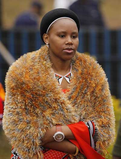 Inkhosikati LaNkambule từng "vượt mặt" một ngôi sao truyền hình xinh đẹp, hoa hậu Swaziland cùng 10.000 cô gái khác trong nghi lễ múa sậy năm 2007 để trở thành thê thiếp của vua. Ảnh: Observer.