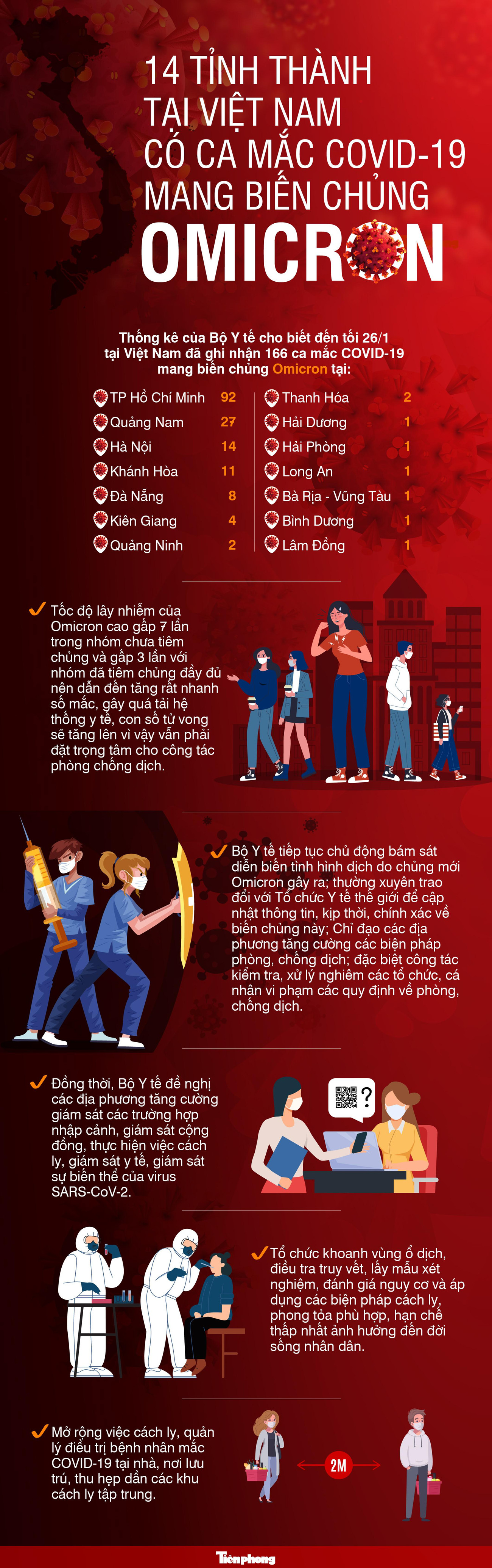TPO - Thống kê của Bộ Y tế cho biết đến tối 26/1 tại Việt Nam đã ghi nhận 166 ca mắc COVID-19 mang biến chủng Omicron.