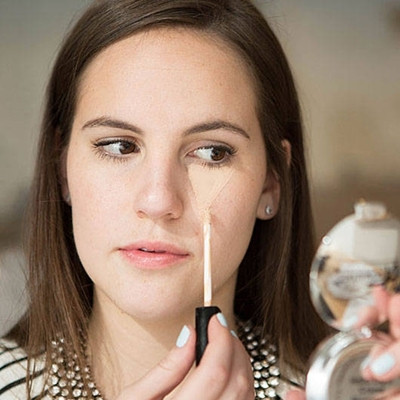Bạn thường quen chấm kem che khuyết điểm rải rác chỉ ở những điểm mình cần. Nhưng nếu thử áp dụng quy tắc hình tam giác ngược ở phần dưới mắt kéo dài đến giữa má, bạn sẽ che được khuyết điểm hiệu quả ở phần đuôi mắt và hai bên gò má, đặc biệt là giấu đi đôi mắt thâm quầng vì thiếu ngủ.