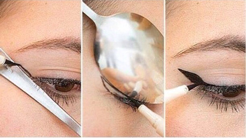 Mẹo để kẻ mắt mèo chuẩn cho những người chưa thạo trang điểm là sử dụng một chiếc thìa úp sát bầu mắt sao cho vành thìa tiếp nối với phần ngoài đuôi mắt. Sau đó, dùng chì kẻ mắt vẽ dọc theo đường đó để có đường kẻ mắt mèo hoàn hảo.