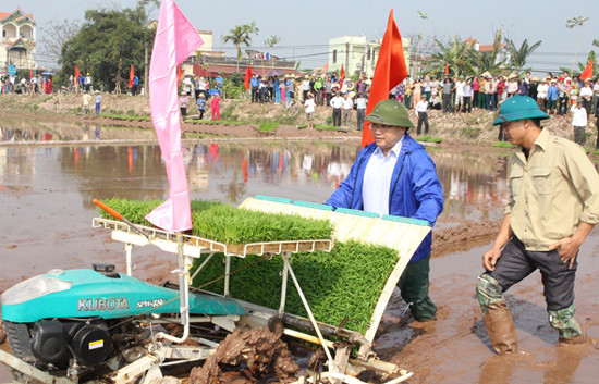 Ngày 14/2 (mùng 7 Tết), sau khi phát động lễ xuống đồng, Bí thư Thành ủy Hà Nội đã xuống ruộng điều khiển máy cấy cùng bà con nông dân thôn Phong Triều (xã Nam Triều, huyện Phú Xuyên).