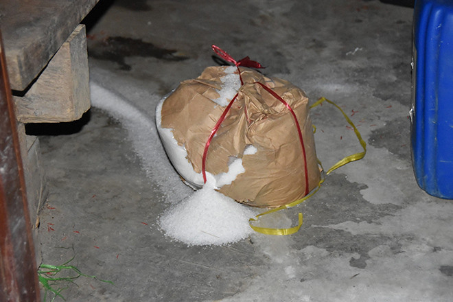 | Các dụng cụ, hóa chất độc hại phục vụ cho việc tuyển rửa kim loại nặng được phát hiện tại hiện trường. |