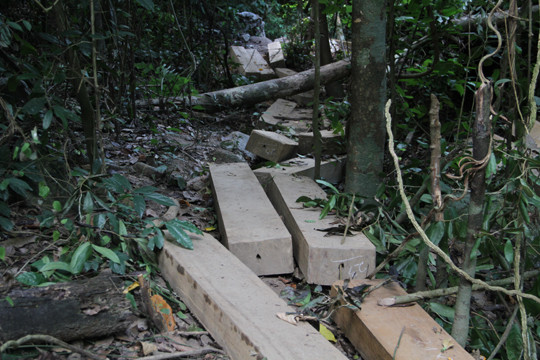 "Lâm tặc dùng cưa máy để đốn hạ cây nhưng ở vị trí xa đường dân sinh nên cơ quan chức năng rất khó phát hiện. Vụ việc chỉ bị phát giác khi chính quyền địa phương nhận được tin báo của người dân và yêu cầu lực lượng chức năng kiểm tra. Khi đến hiện trường thì bọn lâm tặc đã bỏ chạy và để lại toàn bộ số gỗ vừa đốn hạ tại rừng”, ông Đẩu cho biết.