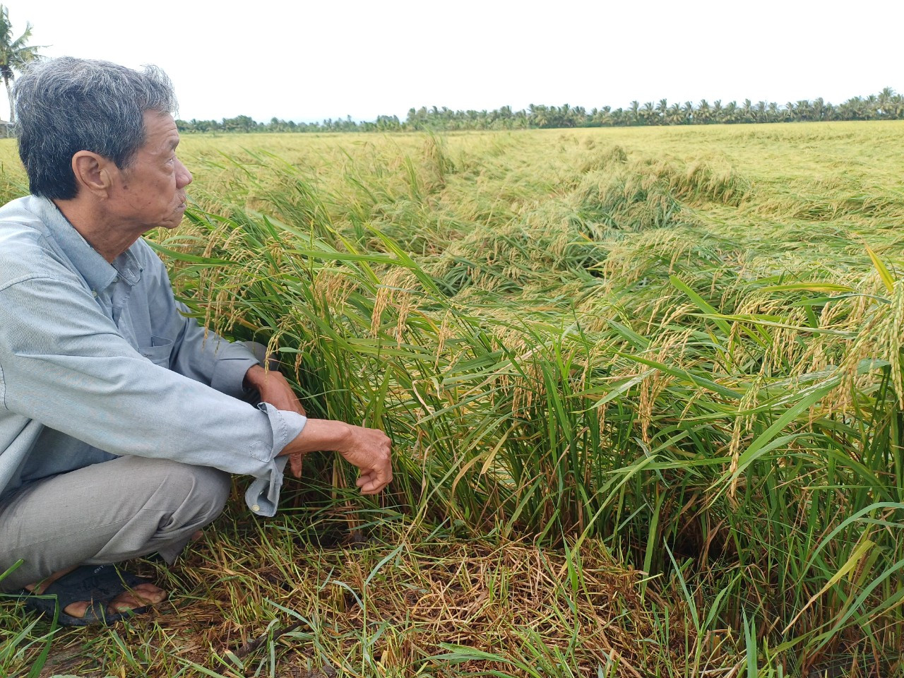 Đây là những trà lúa đang giai đoạn sắp thu hoạch, việc bị đổ ngã gây ảnh hưởng lớn về năng suất.