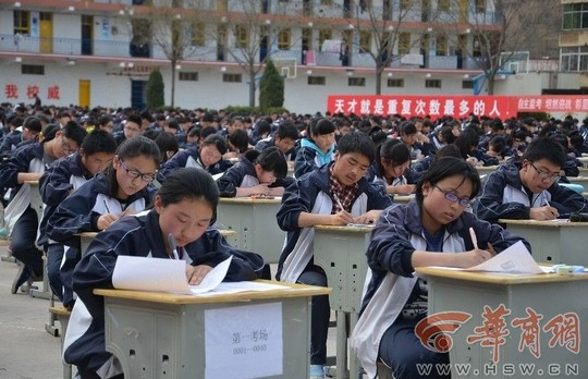 Tờ South China Morning Post ngày 13-4 cho biết có hơn 1.700 học sinh ở Trường Trung học Nghi Xuyên ở quận Nghi Xuyên, tỉnh Thiểm Tây, Trung Quốc tham dự kỳ thi thử nghiệm trên sân trường.