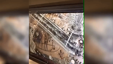 Khoảnh khắc xảy ra sự cố đã được ghi lại bởi camera an ninh. Theo đó, đoạn thang cuốn dài 45m khi đang đưa hàng chục khách hàng lên tầng bỗng đột ngột đổi chiều, chạy ngược lại với tốc độ nhanh gấp đôi.