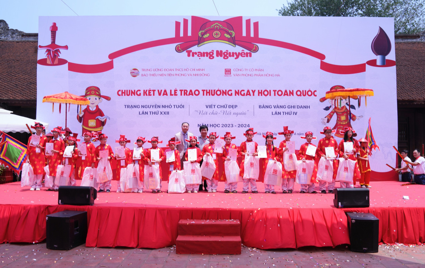 | Ngày hội Trạng nguyên nhỏ tuổi, Bảng vàng ghi danh và Viết chữ đẹp Nét chữ - Nết người năm học 2023-2024 là sự kiện do báo Thiếu niên Tiền Phong và Nhi đồng phối hợp với Công ty cổ phần văn phòng phẩm Hồng Hà tổ chức. |