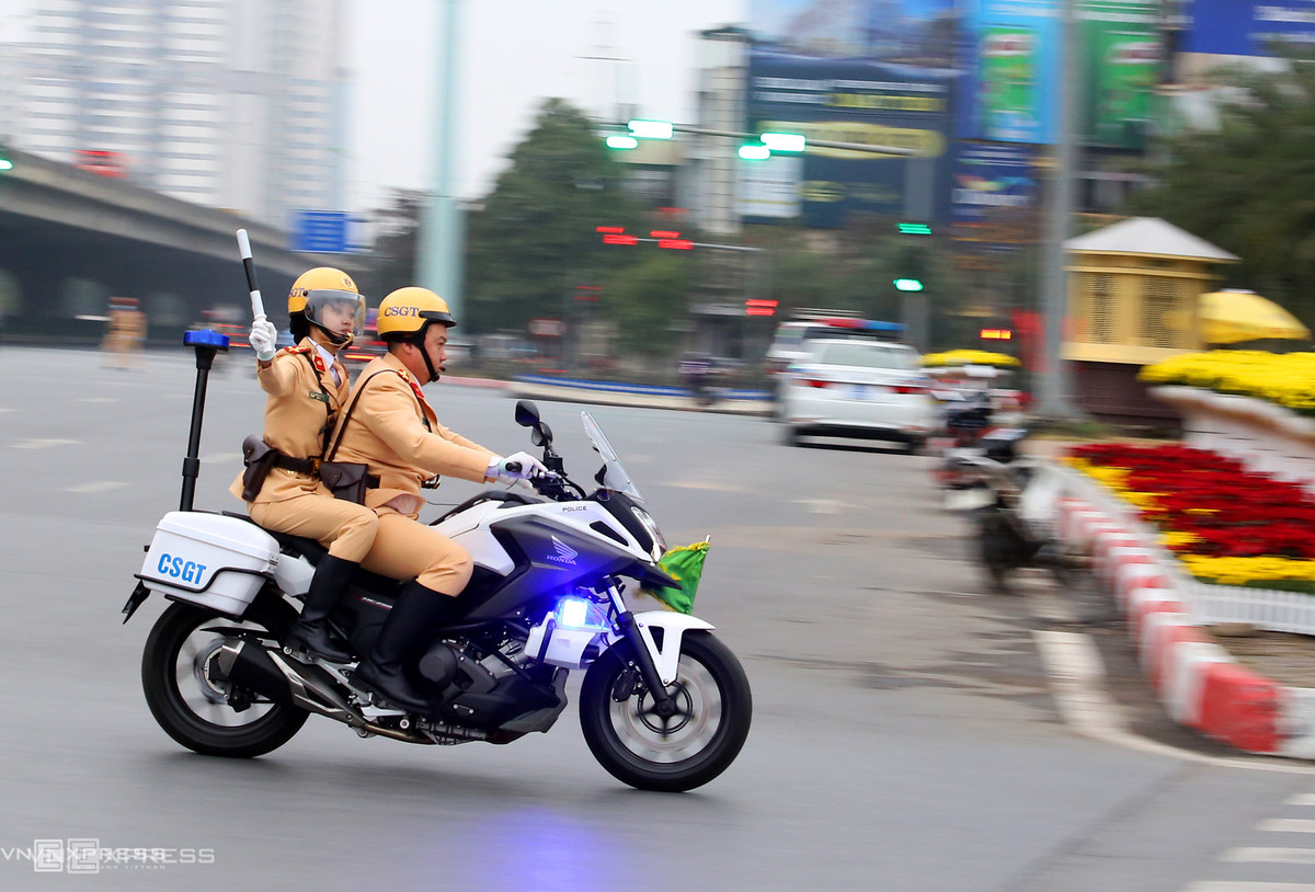 Trong quá trình dẫn đoàn, nam cảnh sát mang bộ đàm, gắn hai loa ở phía trước liên tục phát tín hiệu để dẹp đường. Nữ cảnh sát ngồi phía sau dùng gậy chỉ huy giao thông ra hiệu lệnh cho phương tiện dừng, nhường đường cho đoàn xe ưu tiên. Theo lãnh đạo Cục Cảnh sát giao thông, trong ba ngày đầu diễn ra đại hội, công tác dẫn đại biểu được đảm bảo tuyệt đối an toàn, thông suốt, không xảy ra các tình huống bất ngờ, bị động, mất an ninh trật tự.