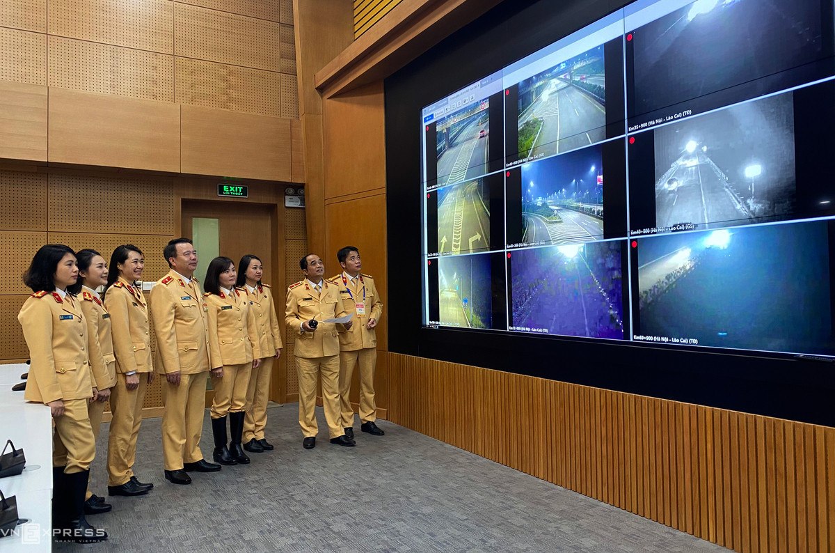 Sau khi kết thúc một ngày làm việc, nữ cảnh sát giao thông cùng lãnh đạo họp rút kinh nghiệm và quan sát các tuyến đường dẫn trên hệ thống camera giám sát ở trung tâm để có phương án di chuyển tối ưu.