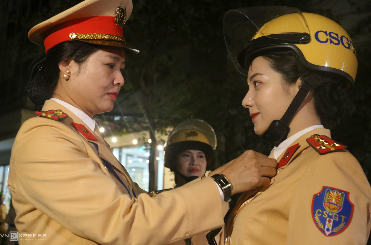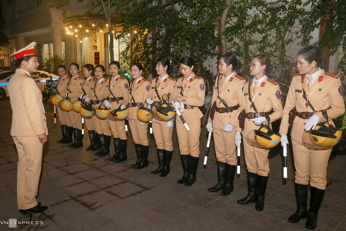 Hàng ngày, các nữ cảnh sát giao thông thức dậy lúc 5h sáng, ăn sáng gần cơ quan, tập trung đội hình, nghe phổ biến nội dung làm việc của cả ngày. Thượng tá Đặng Thị Lanh, Chủ tịch Hội phụ nữ Cục Cảnh sát giao thông, sau khi động viên nữ cảnh sát đã chỉnh đốn quân tư trang cho từng người.
