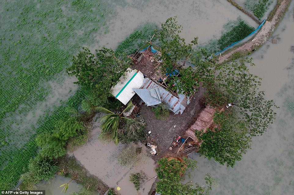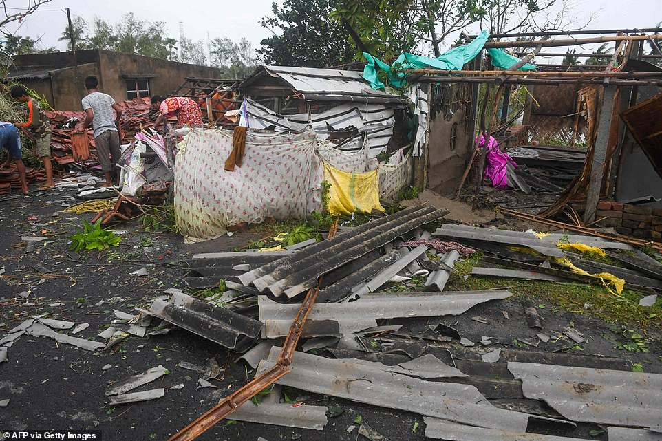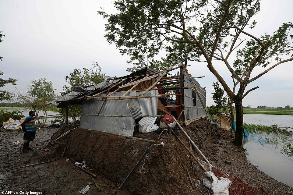 Ở Bangladesh, số người tử vong đã lên đến 8 người, và 20 người khác bị thương. Trong ảnh: Một căn nhà bị đổ sập ở Bakkhali (Ấn Độ).