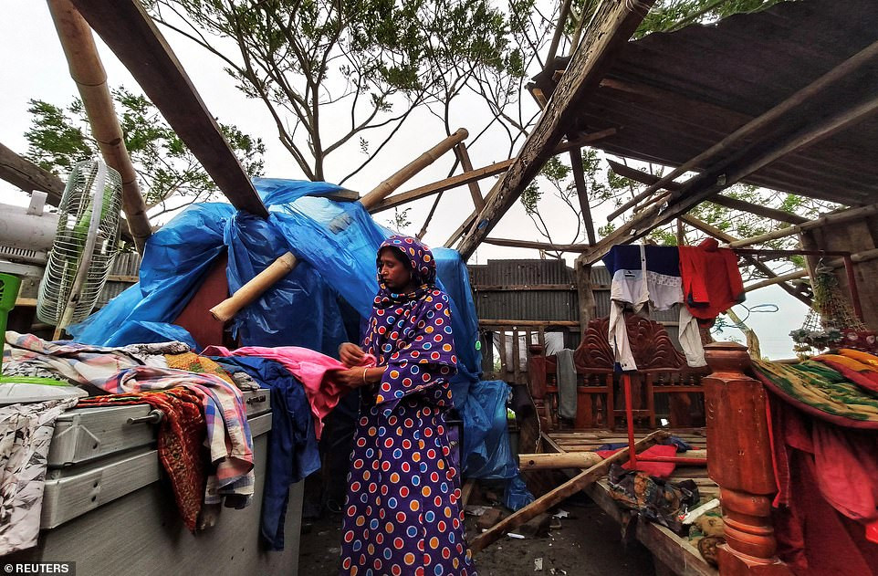 Lốc xoáy đã làm hàng ngàn căn nhà bị hư hại. Khoảng 2 triệu người ở Bangladesh đã phải rời nơi ở đi sơ tán. Trong ảnh: Bão thổi bay mái nhà ở Khulna (Bangladesh).