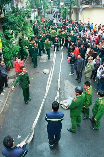 Phía Phòng Cảnh sát Phòng cháy chữa cháy Đống Đa cũng huy động 5 xe cứu hỏa và hàng chục cán bộ chiến sỹ PCCC đến dập lửa. Lực lượng Công an phường, dân phòng, dân quân tự vệ phường Quang Trung (Đống Đa) cũng có mặt để phối hợp chữa cháy.
