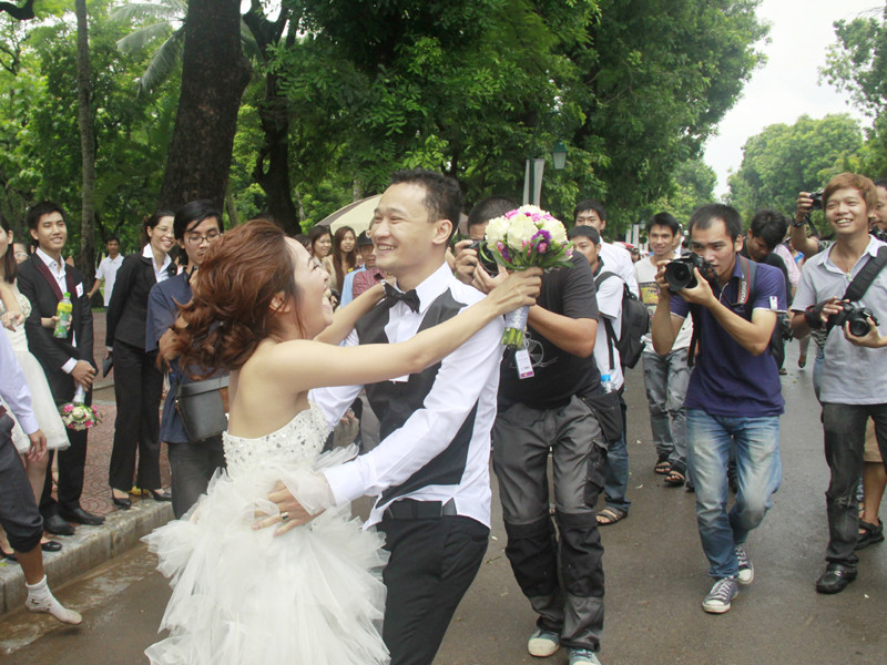 Sáng nay, 100 cặp đôi trong các bộ trang phục cưới rực rỡ sắc màu, đã tập trung tại Khách sạn Sheraton Hà Nội để cùng khoe tài, đọ sắc. Các cặp đôi cùng trải qua một chặng đường mô tả quá trình hình thành nên kết quả của tình yêu với ba nội dung chính gồm: lễ rước dâu tập thể trên xe xích lô di chuyển trên cung đường đẹp của Thủ đô từ Sheraton – Yên Phụ Lớn – dốc Hàng Than – Hàng Lược – Lương Văn Can – Lê Thái Tổ - Bà Triệu – Nguyễn Du – Công viên Thống Nhất; Thi chạy Marathon tập tập thể trong trang phục cưới; và màn xếp hình trái tim từ 100 cặp đôi để cầu hôn tập thể.