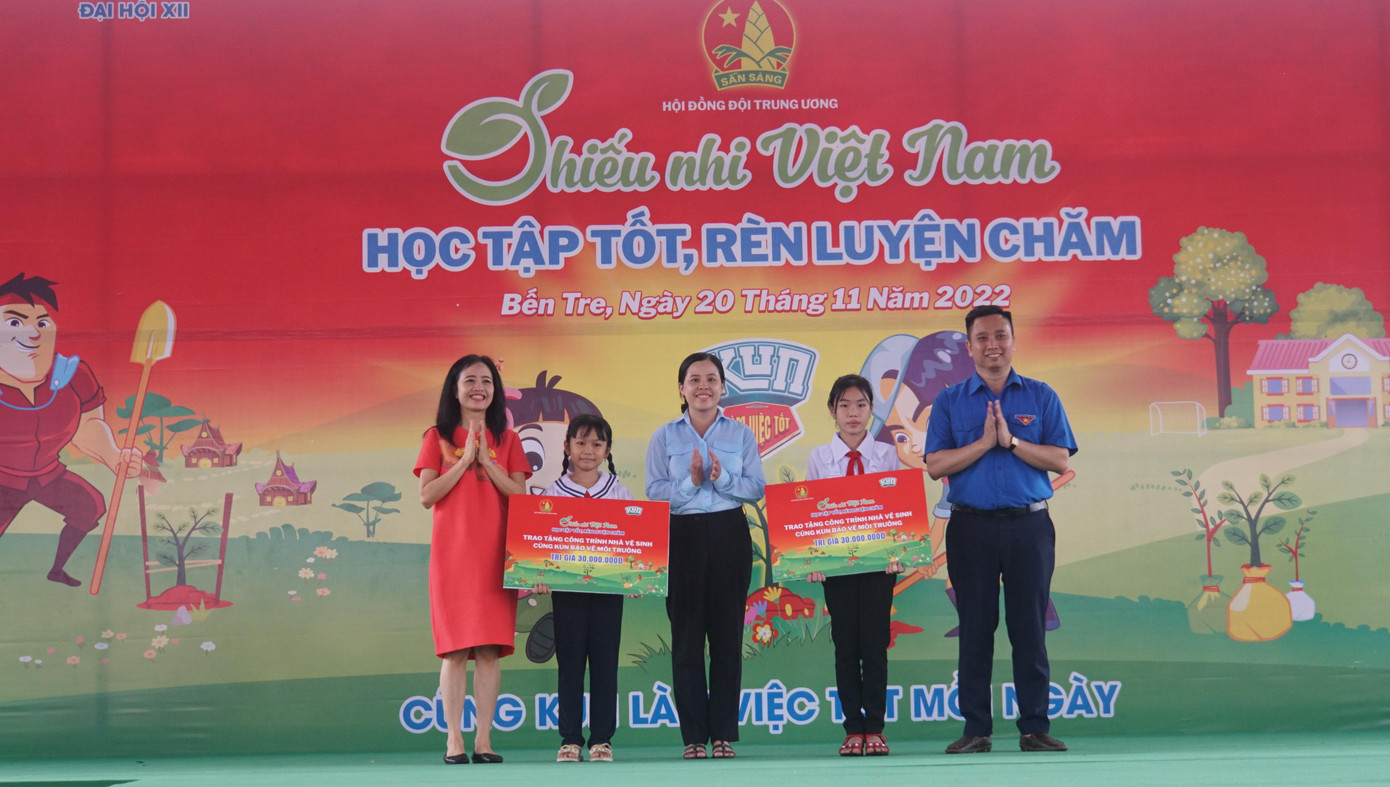 Tại sự kiện, Cty cổ phần Sữa Quốc tế (IDP) - Nhãn hàng KUN đã tổng hợp số tiền gây Quỹ từ đi bộ đồng hành của thiếu nhi để xây dựng trao tặng 3 công trình nhà vệ sinh mang tên “Cùng Kun bảo vệ môi trường” cho hai ngôi trường Tiểu học của tỉnh Bến Tre, với giá trị 60 triệu đồng.