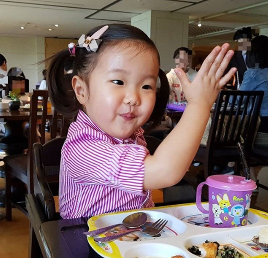 Con gái nam diễn viên mới hơn 2 tuổi nhưng đã rất tự lập trong việc ăn uống.
