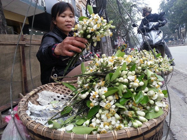 Hoa bưởi nở theo mùa và chỉ có trong thời gian ngắn nên khi hoa nở, một số người tạm gác công việc thường ngày để tranh thủ hái hoa ra Hà Nội bán. Chị Vũ Thị Nhãn, Yên Mỹ, Hưng Yên, cho biết bình chị thường bán rau tại chợ Đông Tác, nhưng từ đầu tháng 3, chị tranh thủ bán dạo hoa bưởi kiếm thêm.