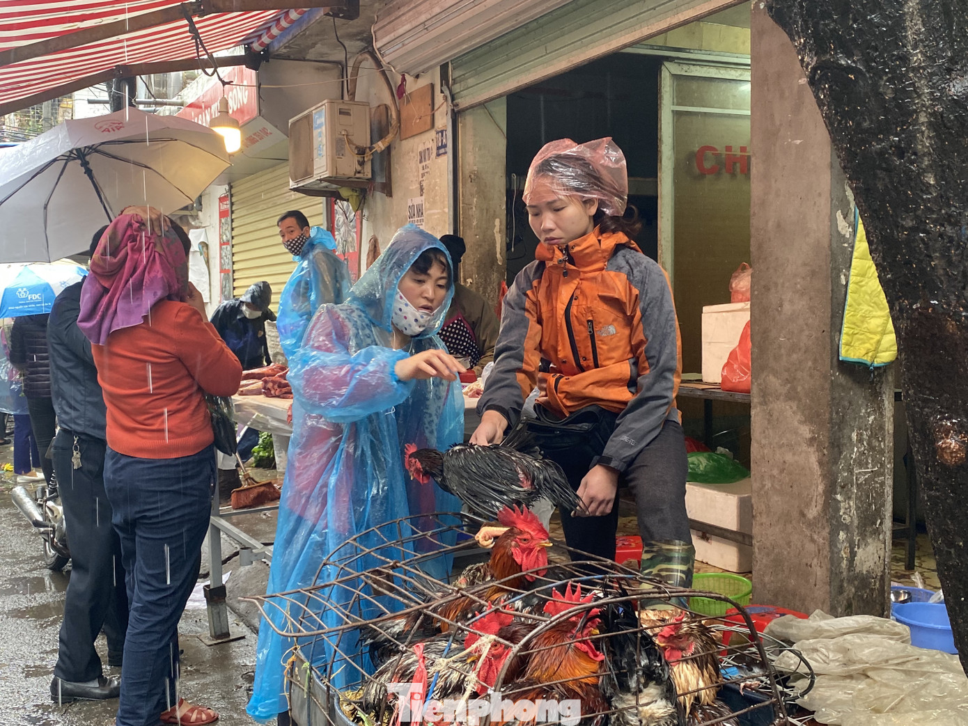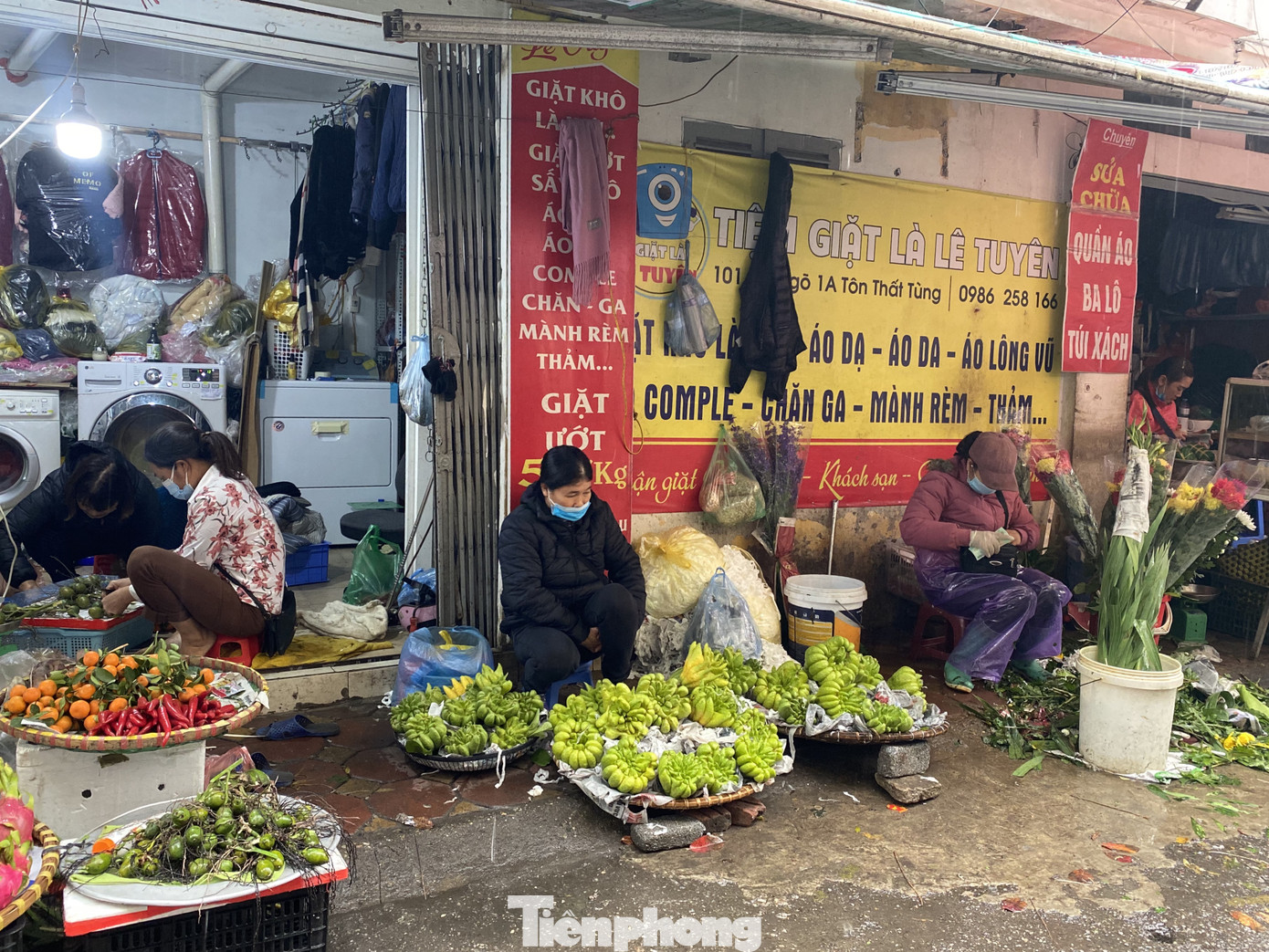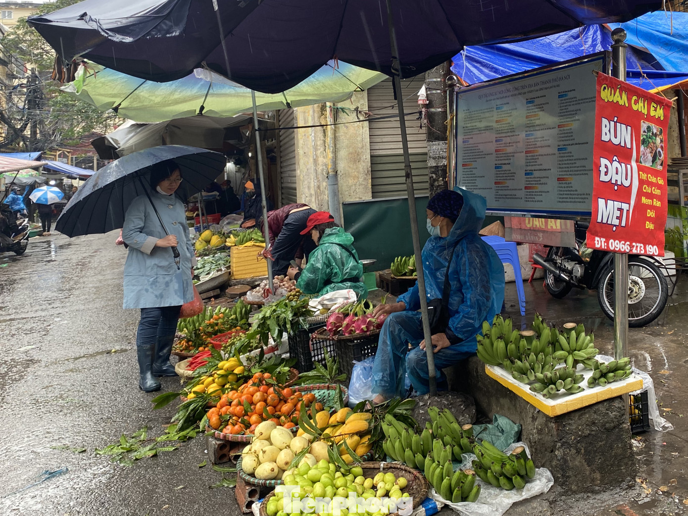 TPO - Mưa lớn tại Hà Nội khiến các chợ truyền thống vắng khách hơn thường lệ. Ngày 28 Tết, một số loại hoa quả bày mâm ngũ quả tăng giá gấp 5 lần. Chuối xanh 10.000 đồng/quả, đủ đủ xanh 30.000 đồng/quả nhỏ. Trầu cau 20.000 đồng/cơi