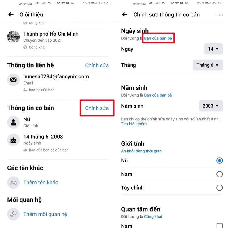 Người dùng có thể tự sửa những thông tin cơ bản của mình trên Facebook về chỉ hiển thị cho bạn bè hoặc thành riêng tư. Bạn cần chọn vào chỉnh sửa thông tin cơ bản và sau đó là quyền riêng tư.