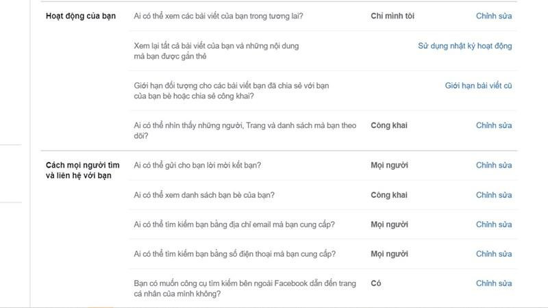 Ngoài ra, bạn còn có thể khóa được người có thể xem thông tin bạn bè của bạn. Chọn vào cài đặt Facebook trên máy tính. Sau đó chọn vào phần Quyền riêng tư và thay đổi quyền riêng tư mọi người thành bạn bè hay chỉ mình tôi.