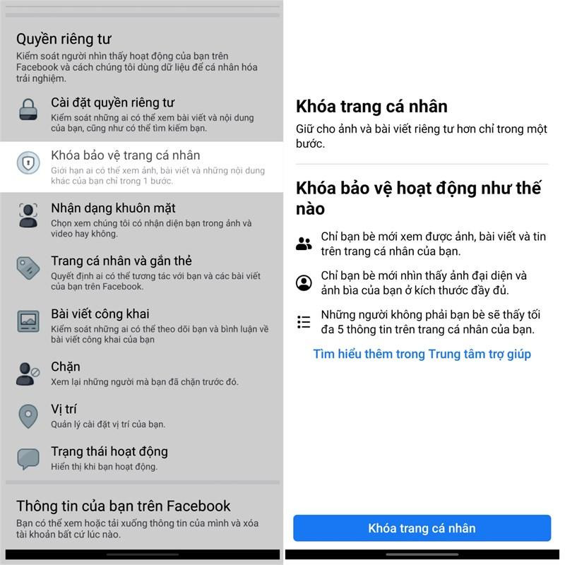 Lưu ý: Khi muốn tháo tính năng này chỉ cần quay lại phần cài đặt 1 lần nữa và chọn mở khóa trang cá nhân.