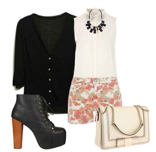 Shorts hoa là một item khá cầu kỳ, nhưng hơn hết, nó lại đang là một trong những hot trend của năm nay. Với những ngày thời tiết nhẹ nhàng như thế này, một chiếc shorts hoa mix cùng cardigan mỏng sẽ là lựa chọn hết sức hợp lý. Nếu bạn là người ưa sự "an toàn" và thanh lịch thì sơ mi trắng là miếng ghép hoàn hảo cho set đồ này. Ngoài ra, hãy mix thêm với một đôi lita boots để làm điểm nhấn cá tính, bạn nhé.