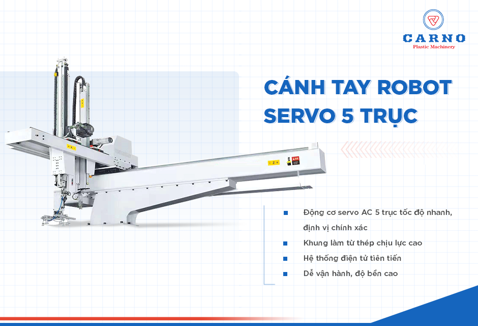Hiện nay, nhiều dòng cánh tay robot đã được ra đời nhằm đáp ứng nhu cầu sản xuất cho các doanh nghiệp ngành nhựa. Vì vậy, nếu bạn đang băn khoăn không biết nên lựa chọn loại robot nào tốt hay dòng sản phẩm nào mới phù hợp thì có thể tham khảo qua các dòng cánh tay robot được ứng dụng rộng rãi nhất trong ngành công nghiệp nhựa hiện nay.