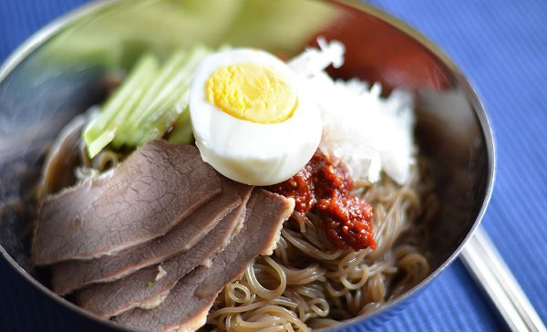Món mì này chỉ có duy nhất ở Hàn Quốc, rất được ưa chuộng vào mùa hè. Với nguyên liệu chính là sợi mì mỏng làm từ bột kiều mạch hơi dai, nước hầm thịt bò cùng lát lê tươi, dưa chuột mát lạnh. Ngoài ra người ta còn cho thêm thịt bò hoặc một quả trứng luộc để tăng thêm dinh dưỡng và tạo màu sắc hấp dẫn.