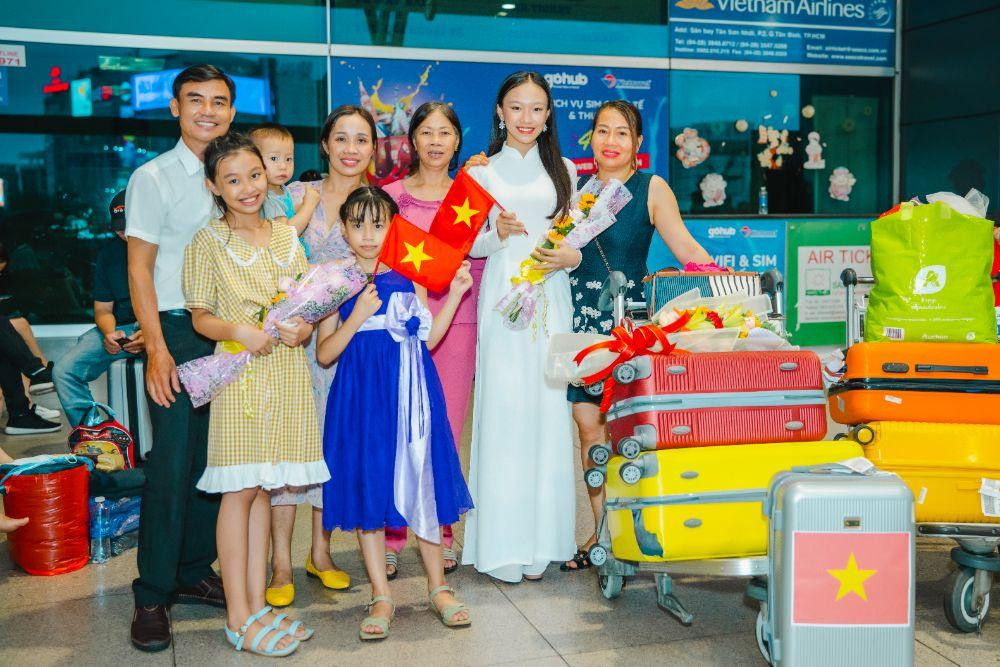 Tại sân bay, hai em đã tự hào hô vang hai tiếng “Việt Nam” cùng với những người yêu thương, như một lời hứa sẽ tự tin, nỗ lực hết mình trên hành trình chinh phục vương miện sắp tới.