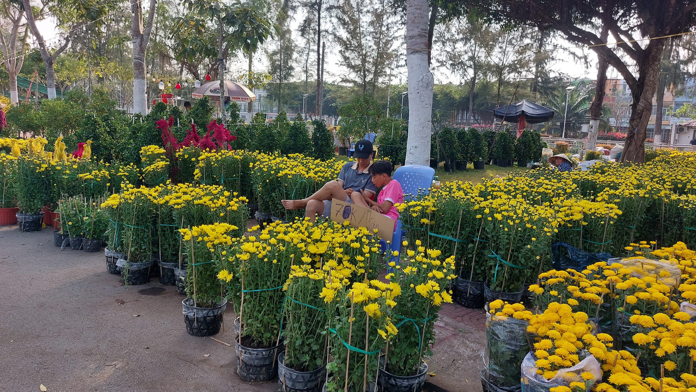 Anh Khoa (nhà vườn ở Cầu Kè, tỉnh Trà Vinh) thông tin: “Tôi mang sang gần 500 cặp cúc đại đóa. Mới ngày hôm trước bán với giá 1,5 triệu đồng/cặp; sáng nay giá chỉ còn 600.000 đồng/cặp nhưng vẫn chưa bán hết. Hoa tôi tự trồng, bán với giá 600.000 đồng/cặp chủ yếu gỡ lại chút vốn mua chậu, thuê phương tiện chở sang Sóc Trăng và tiền thuê mặt bằng”.