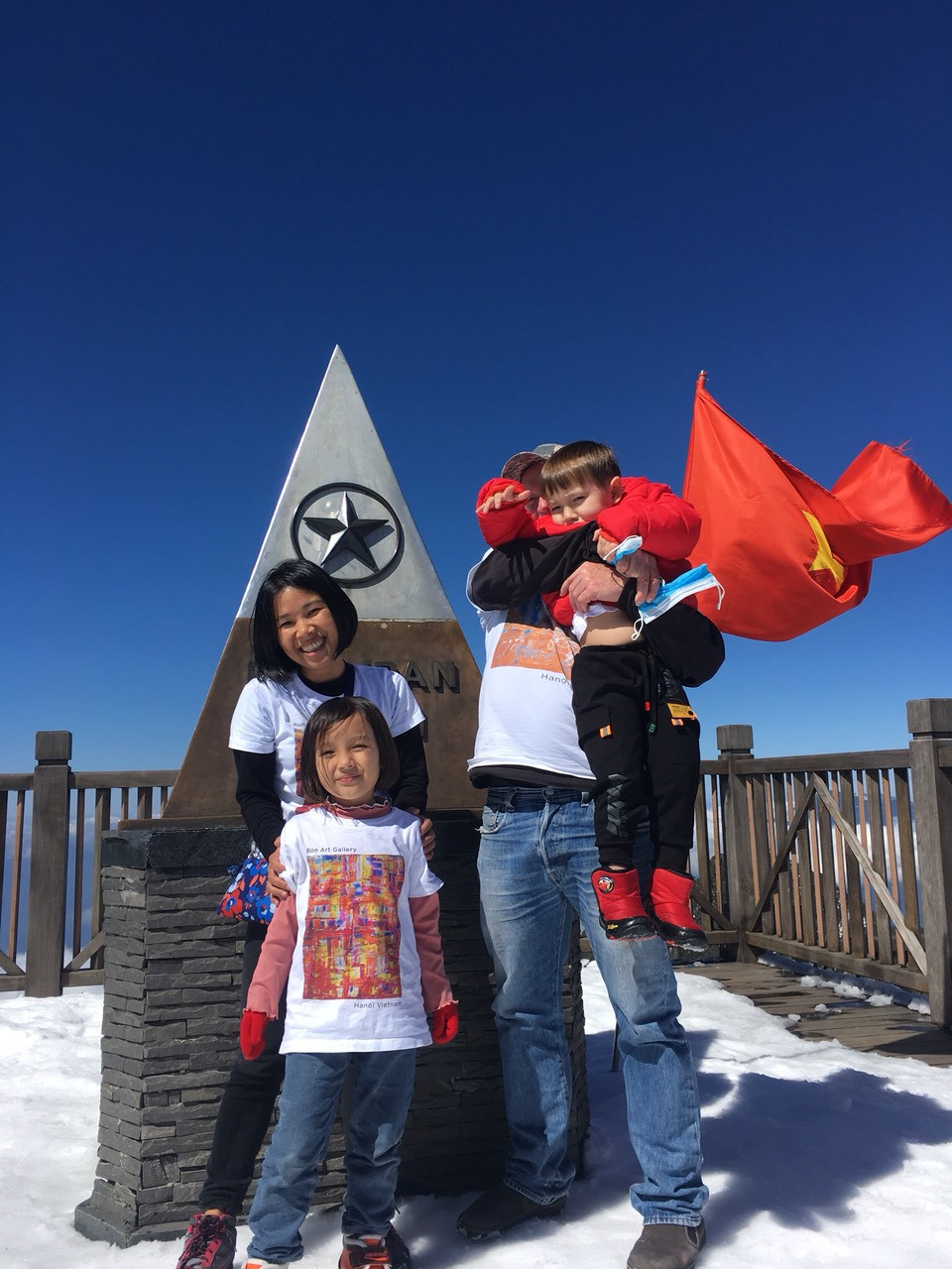 Anh Ronald Edward (quốc tịch Mỹ, hiện đang sống ở Hà Nội) đã đưa vợ và 2 con nhỏ đến Sapa du lịch dịp tết này và vô cùng thích thú khi đúng dịp Fansipan có tuyết.