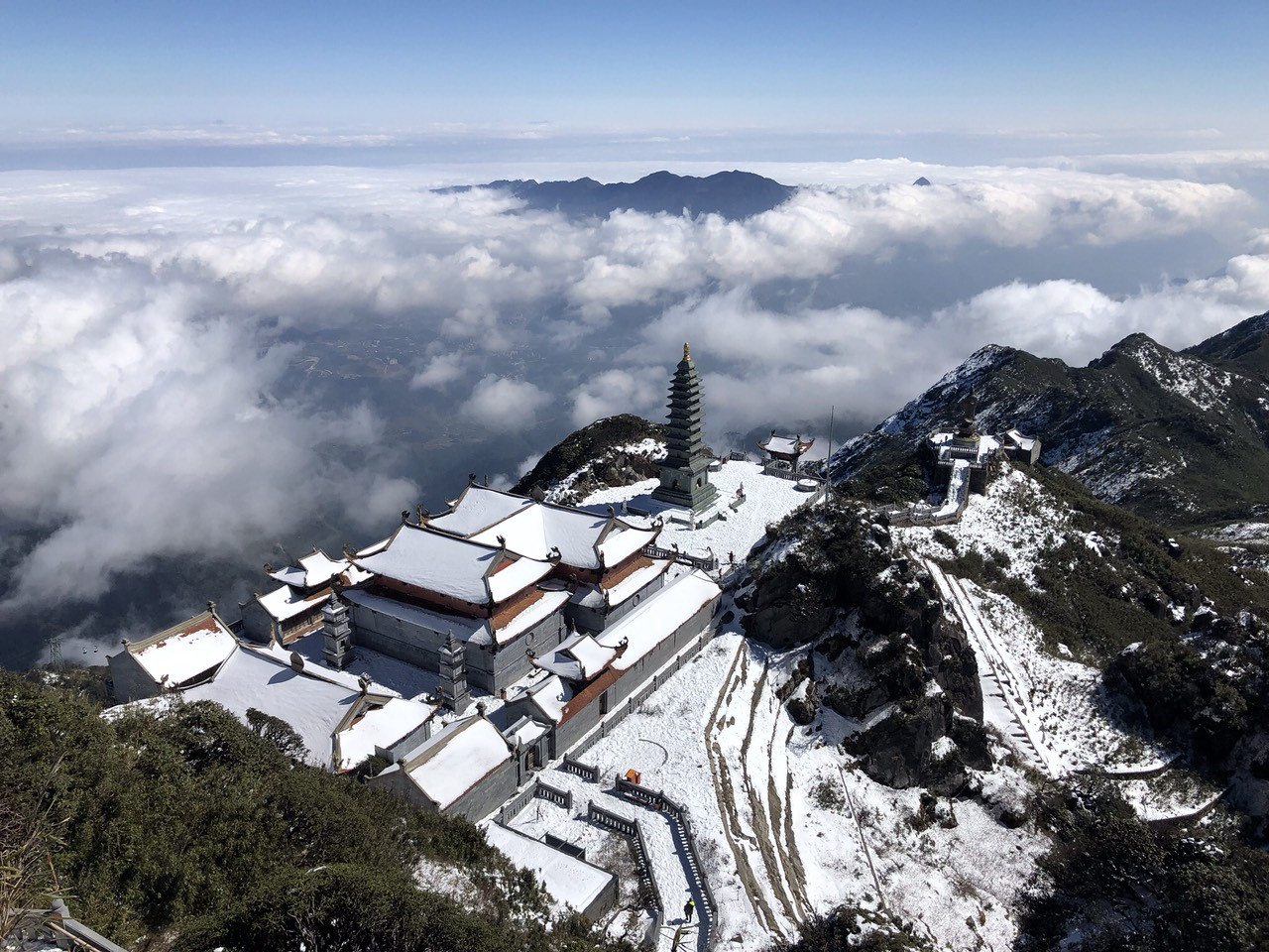 Khu vực đỉnh núi Fansipan đã có tuyết phủ dày từ 3-4 ngày nay. Tuyết trắng xóa trên các bậc thang, phủ trắng trên các mái chùa, các tán cây, tuyết óng ánh lung linh trên các đỉnh núi tạo nên những cảnh quan mê hoặc lòng người.