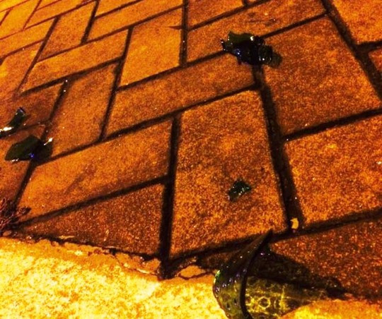 Tại hiện trường, rất nhiểu mảnh thủy tinh vỡ nằm rải rác trên mặt đường, gây khó khăn cho người đi đường.