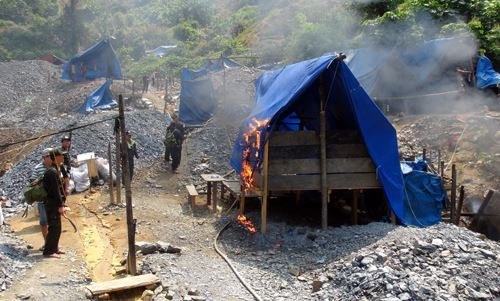 Sau khi lập biên bản xử phạt với 13 chủ bãi, các trinh sát phá hủy 15 hầm lò, 22 lán trại cùng hàng chục máy móc được dùng để khai thác vàng. Hơn 200 vàng tặc bị đẩy đuổi, bàn giao chính quyền địa phương quản lý.