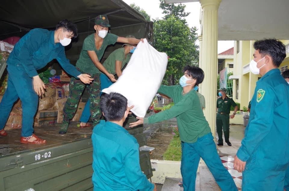 | Ngoài việc hỗ trợ công tác đảm bảo an ninh, các chiến sĩ sẽ phát lương thực, thực phẩm cho nhân dân |